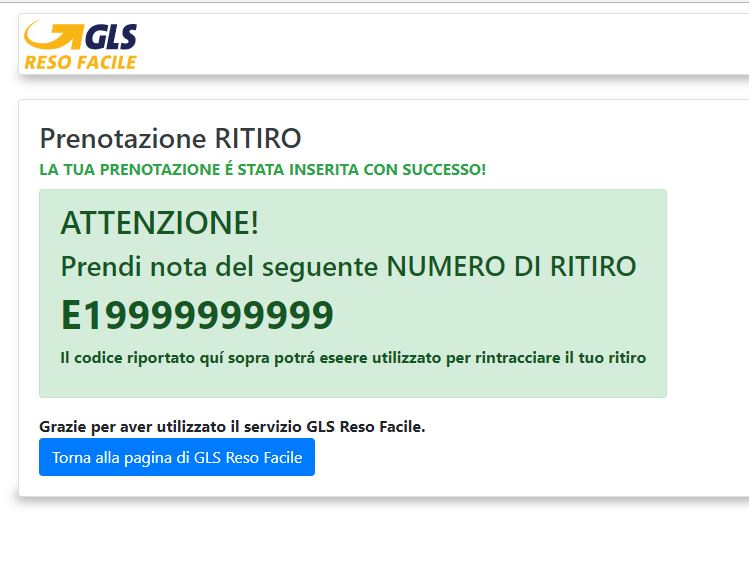 Il NUMERO DI RITIRO ti é stato comunicato nella pagina di riepilogo alla fine della prenotazione.
